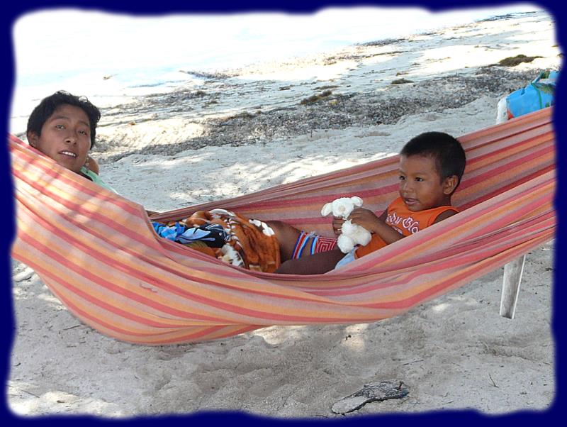 Les conditions de logement sont bien sûrs précaires, mais ils semblent d'être heureux d'être là, ce sont un peu aussi leur vacances, façon "Club med". Ils entretiennent le terrain, le déboisent parfois (plus ou moins), ramassent les cocos, pêchent, les femmes cousent leur molas, cuisinent, se baladent en pirogues, les enfants jouent ... mais ne vont donc plus à l'école.