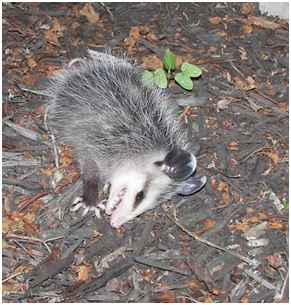 | | Opossum qui simule la mort. By Shouldbecleaning Licence