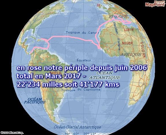 Au compteur de cette première partie du voyage sur ce bateau : 13'343 milles depuis notre départ de France le 22 juin 2006, soit 24'711 kilomètres pour nos amis terriens (1,852 km pour un mille marin)