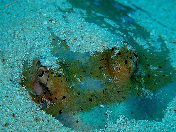 C'est l'éperon caudal qui inflige la blessure. Il faut donc faire attention de ne pas marcher dessus. Elles sont parfois invisibles tant elles savent parfaitement se dissimuler dans les fonds sablonneux. L'injection de venin et de staphylocoques rend très difficile la cicatrisation de la blessure. |