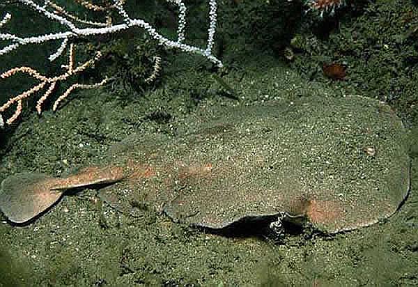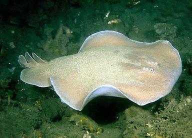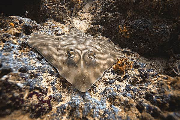 Dans son élégant manteau, la raie bouclée (Raja clavata) repose sur le fond, souvent enfouie dans le sable.