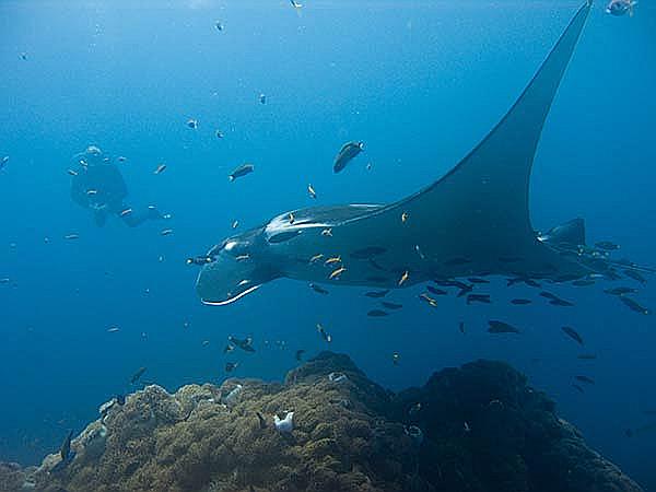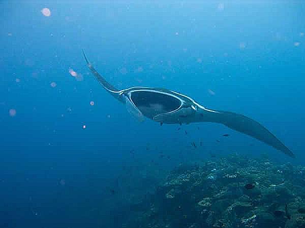 Contrairement aux autres raies, la manta évolue en pleine eau et se pose rarement sur le fond. Elle évolue dans toutes les mers chaudes et tempérées du globe. Elle filtre l'eau pour en extraire plancton et petits poissons.