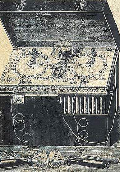 | Appareil électro-médical portatif de Trouvé datant de 1890. |